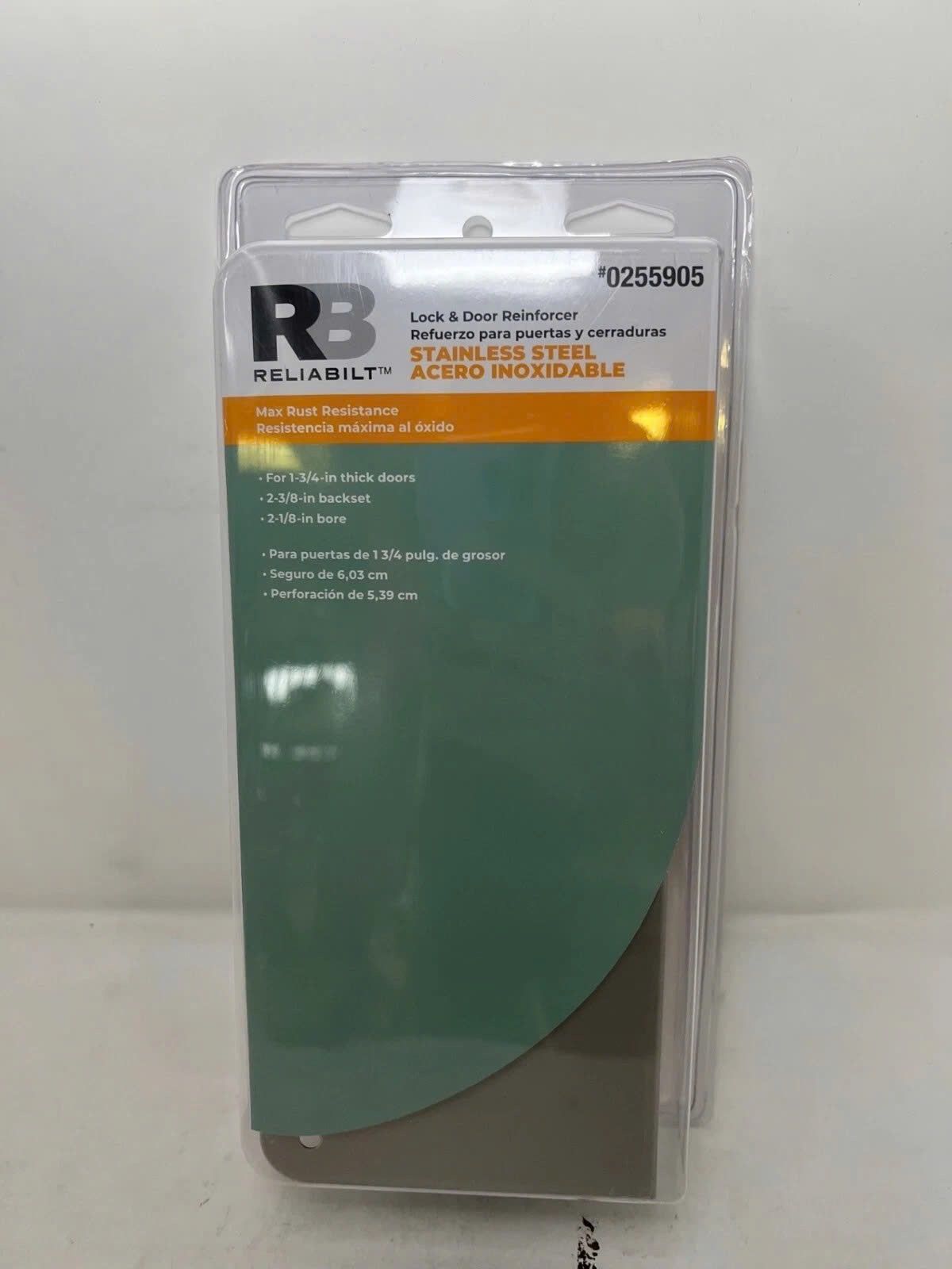 Customer return item in full working condition. Sold as is. RELIABILT satin finish door reinforcer measuring 3-7/8 in W x 9 in H. Designed to strengthen and repair damaged door areas around locks or handles. Durable construction helps extend door life and improve security for residential use. ⚠️ No accept return.