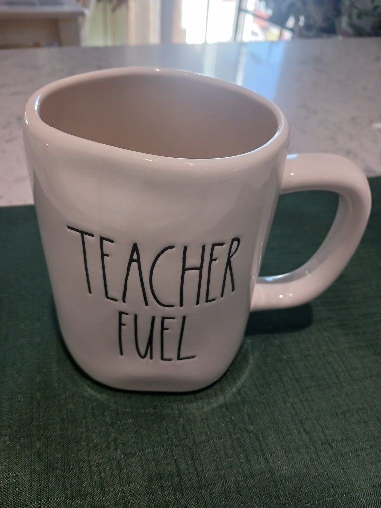 Rae Dunn "Teacher Fuel" Ceramic Mug by Magenta. Cup Measures 16 Ounces. 5" Tall 3 1/2" Wide. NEW!