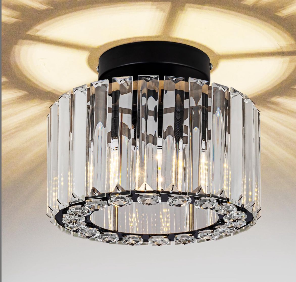 Crystal Ceiling Light, Black Semi Flush Mount Lighting Fixture Modern Chandelier, 8.66 Inch Mini Flush Mount Ceiling Lamp For Hallway Entryway Kitchen Bedroom