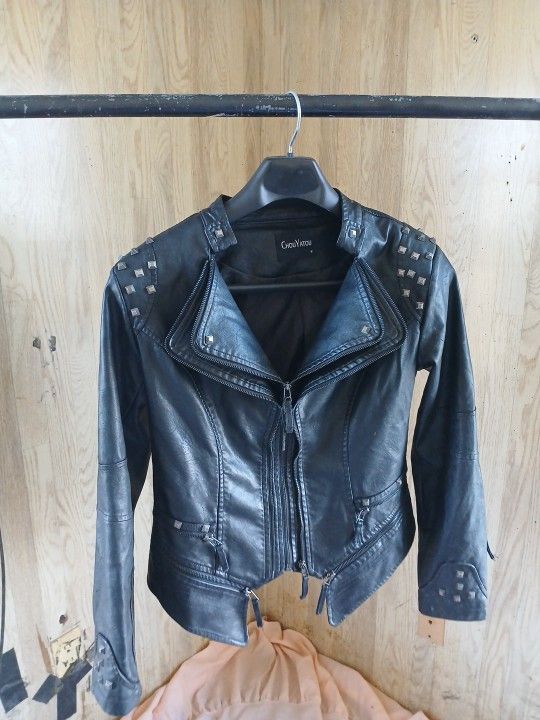 Chouyatou Women's Moto Studded Faux Leather Biker Jacket Medium Rocker Metal