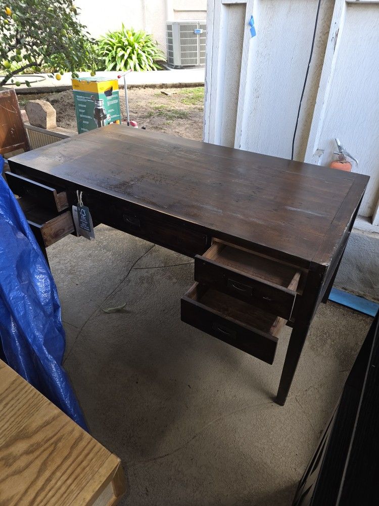 Has scratches but it can be repaired. Real wood. Retails over $700 new. Solid and well built OBO Sits 31" High This is a great piece for a restore. Solid wood and not too many deep scratches. Just needs a solid sanding and coat.