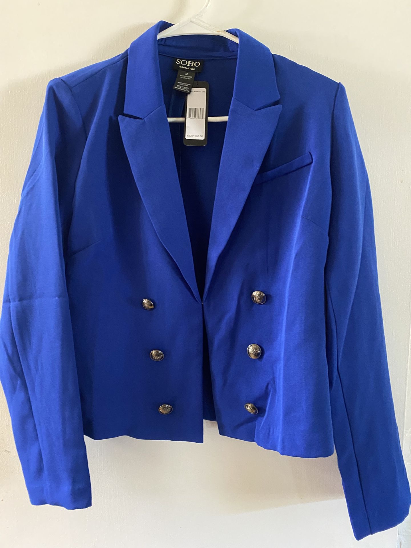 This is a brand new with tags blue blazer only by SOHO in excellent condition. Asking $8.00. Please read complete description before sending messages: This and others must sell ASAP!! If it’s up it’s available! Please do NOT message from 10:00pm-6:00am or unless seriously interested in coming to my location at 91767! Exact cash with small bills and pick up only at 91767! Please check other items all must sell ASAP!! Thanks—