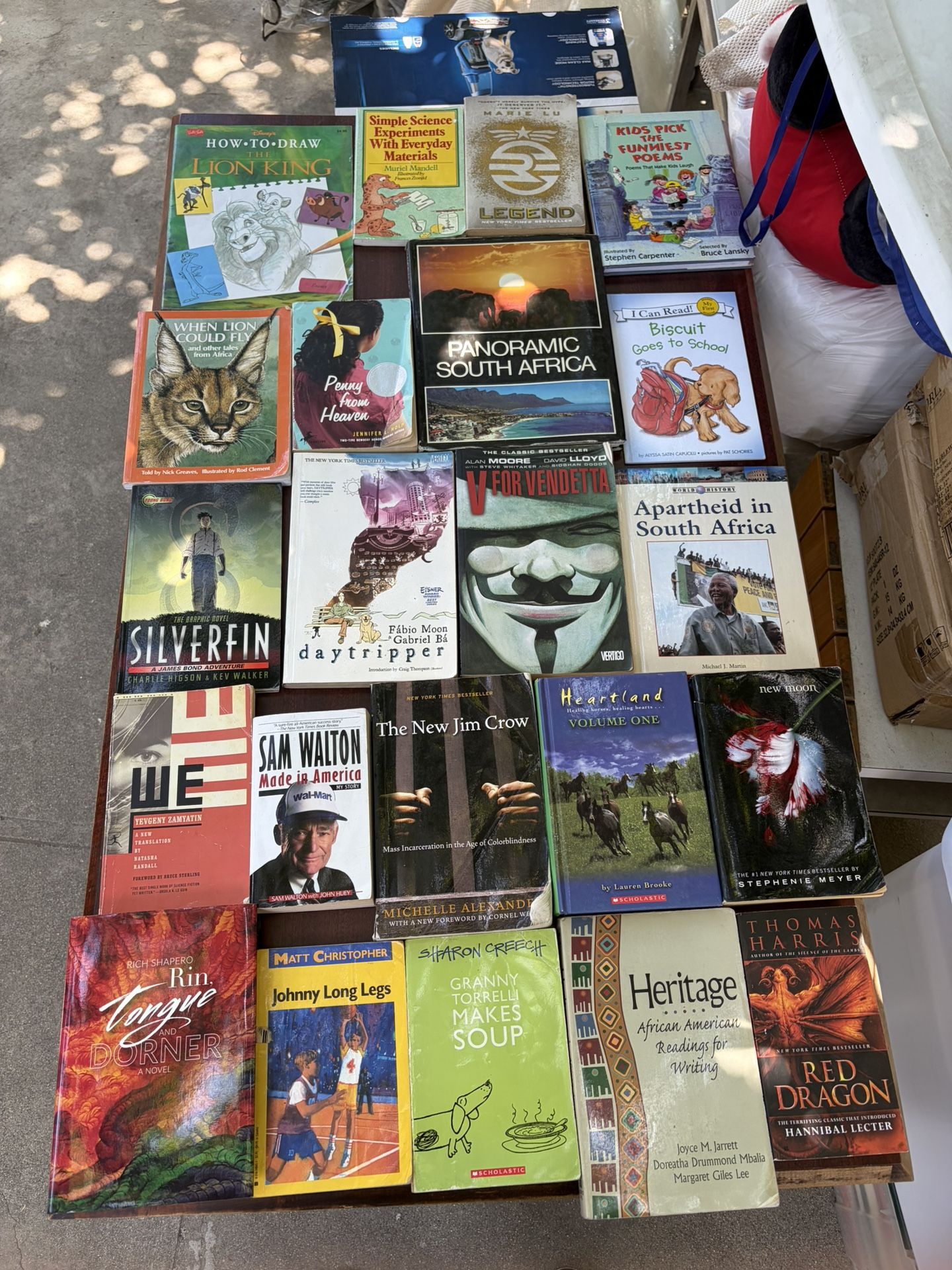 Asking for fair prices on what you believe is fair. Lots of books, ranging from different genres. Children Adult Cooking School