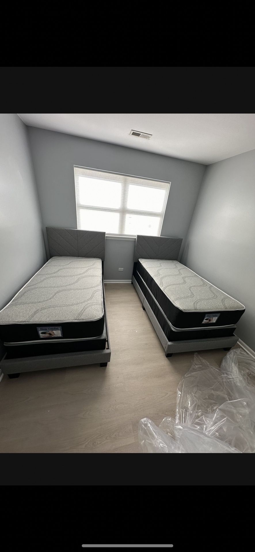 Brand New Twin Bed Frame With Mattress And Box Spring Ready For Delivery π Available in * Queen *Full *Twin Sizes Blue, Black & Gray Colors Available β¨ Take it Home NOW !!! Only $299π₯ Bed Frame Is Brand New, Requires Assembly β Financing Available For Only $49 Down!!!