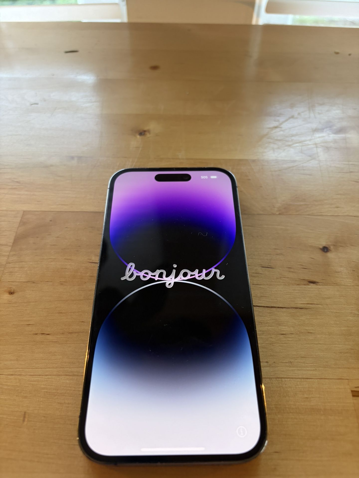 iPhone 14 Pro, 128gb in deep purple. Excellent condition. Lived in a case from day one. Maus case included