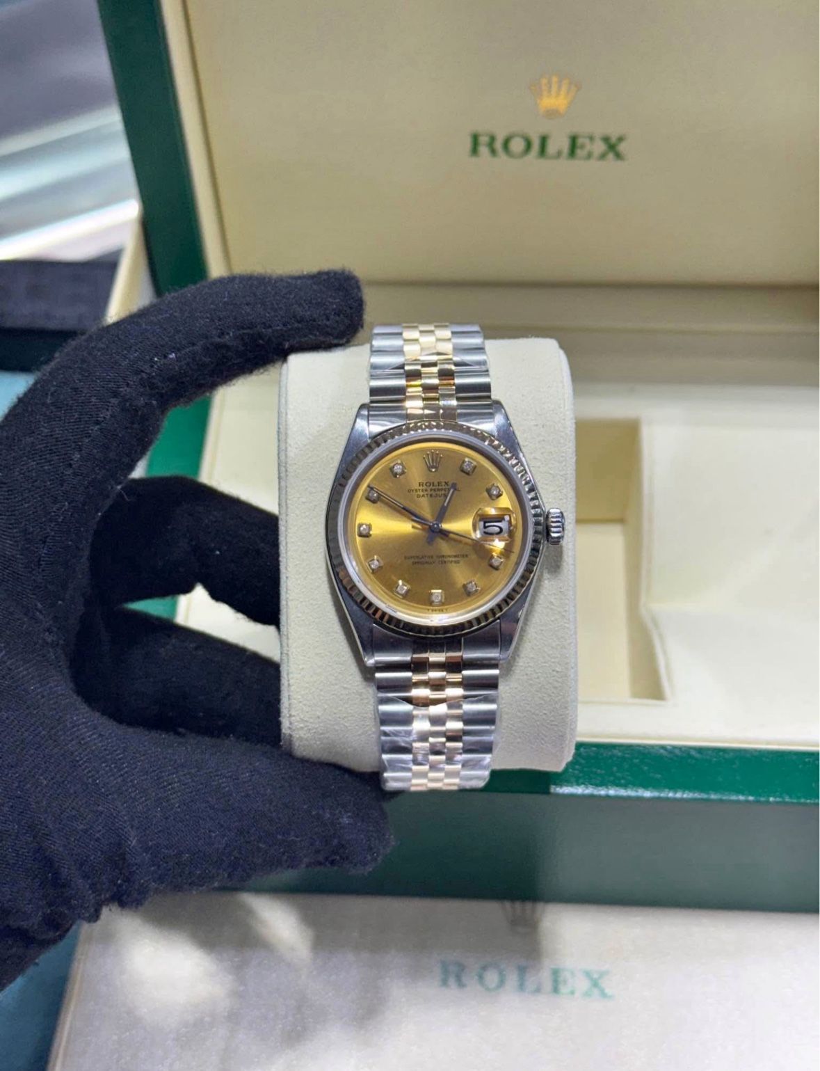 β¨ Rolex DateJust 36mm β Two-Tone with Diamond Dial β¨ Step into timeless luxury with this 36mm Rolex DateJust, a classic two-tone masterpiece crafted for everyday elegance. π₯ Features: β’ Model: Rolex DateJust 36mm β’ Dial: Champagne dial with diamond hour markers β’ Bezel: Fluted bezel β’ Band: Two-tone Gold & Stainless Steel Jubilee bracelet β’ Movement: Automatic Rolex movement β’ Includes: Rolex Box & appraisal papers π Flawless Diamonds π Located inside Ford City Mall β 7601 S Cicero Ave, Chicago, IL 60652