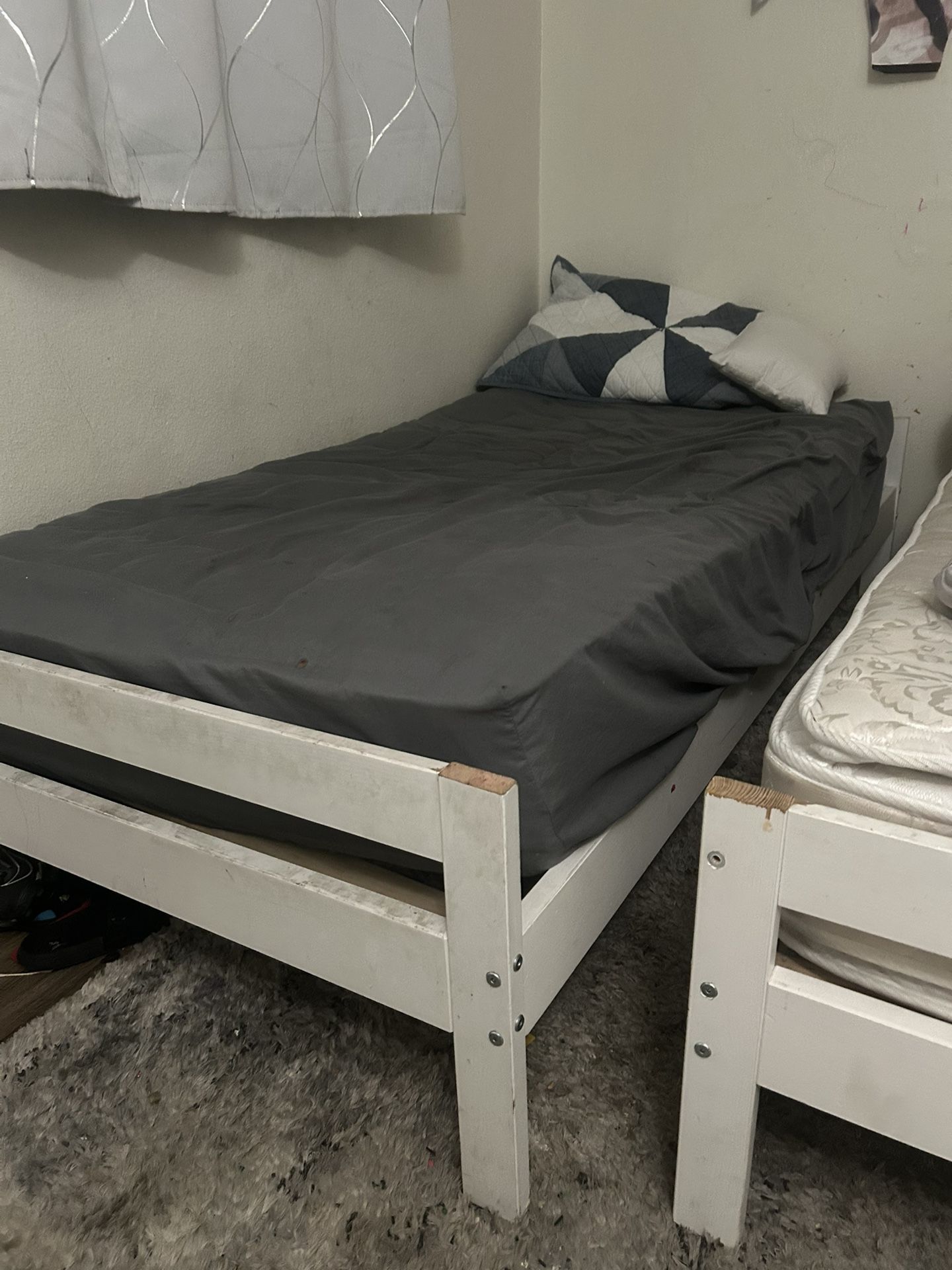 Two twin beds $50 each Light weight wood but very sturdy Comes with mattresses Pick up by lake Mead & Pecos or can deliver for a small fee