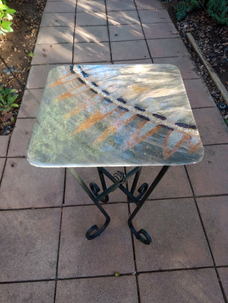 This unique table top is handcrafted using acrylic paint, embellished with glitter, and coated with high quality epoxy resin. It's perfect for anyone who appreciates inspirational art and is looking for a statement piece to complete their space. 16" x 16" x 24"