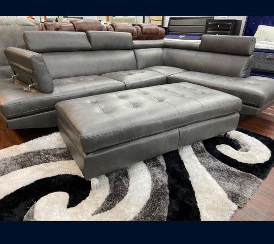 *#1 Living Room Selection!!!*---Ibiza Mature Gray Leather Sectional Sofa W/Ottoman---Delivery And FinancingðŸ¤