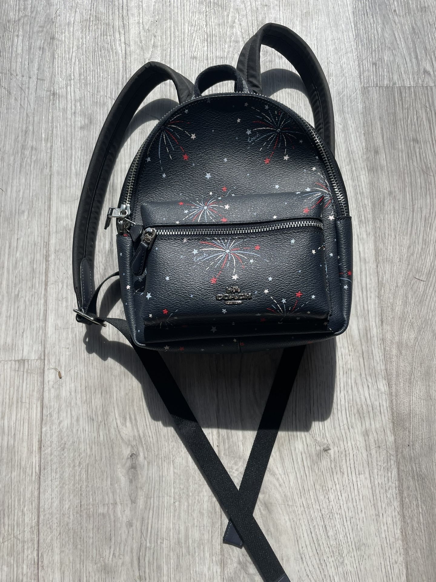 Selling in new condition a COACH MINI CHARLIE backpack in fireworks patriot and authentic too .