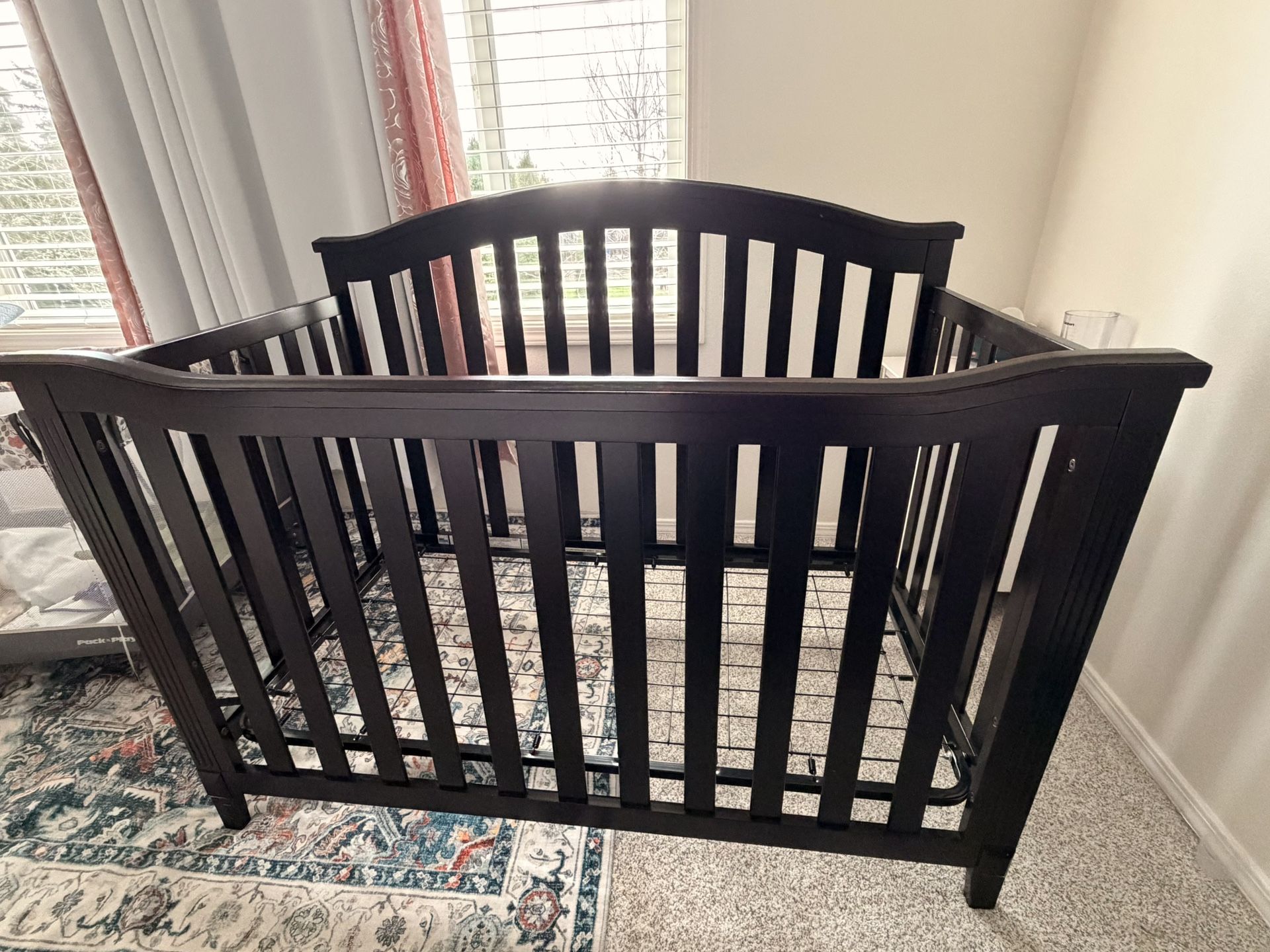 Sturdy wooden baby crib in good condition. -pets & smoke free home