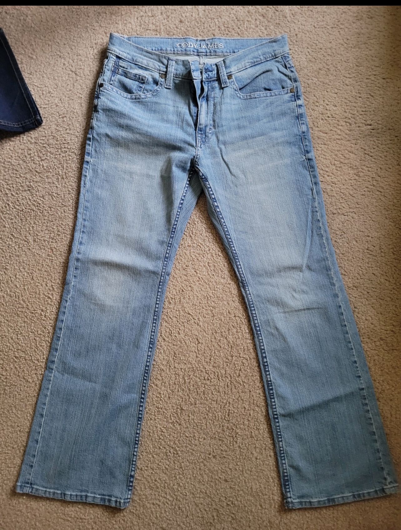 Two brand new pairs of men’s Cody James blue jeans. Purchased at Boot Barn for $60 each; but however, when he tried them on, he didn’t like the fit. Selling for $40 each/$70 for both.