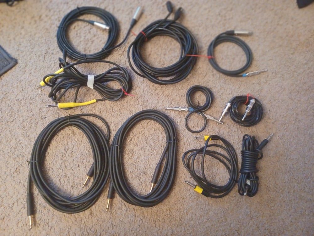 Random microphone, guitar, Bass guitar piano keyboard cable wire. Probably enough for a home studio setup.