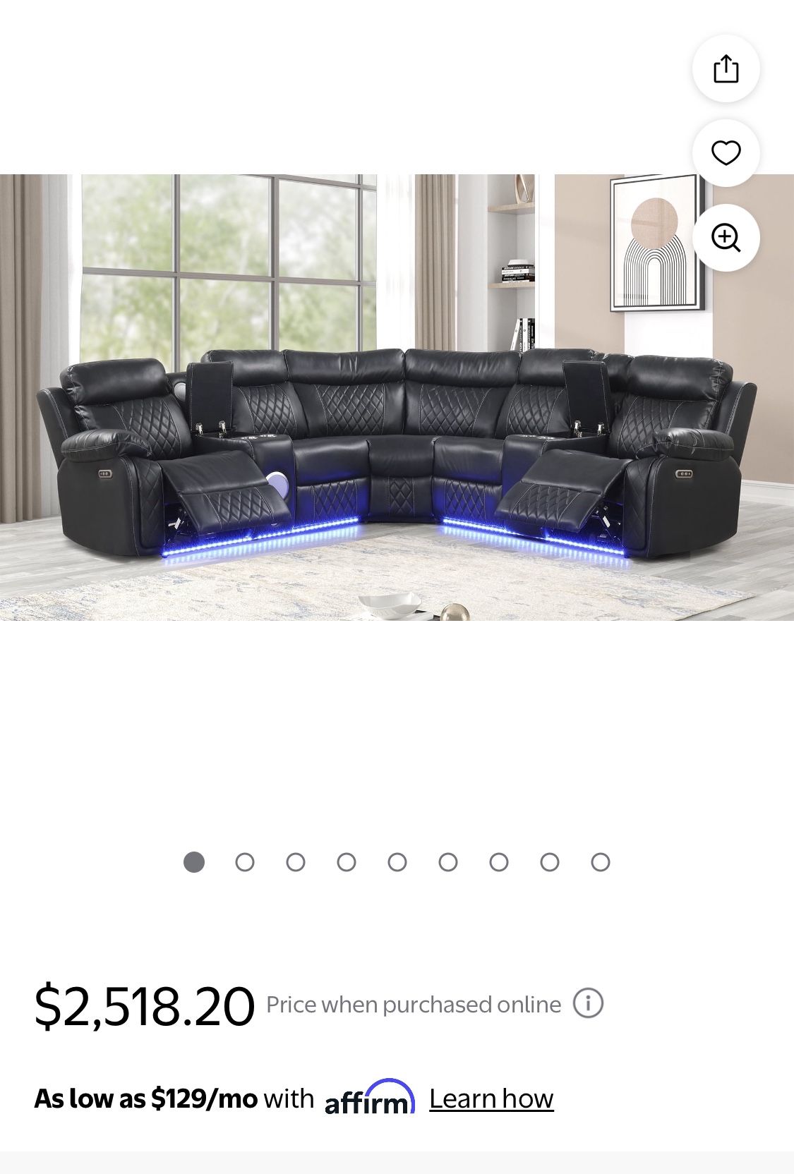 Like new Modern Black recliner sectional. Bought it 5 months ago. Blue tooth enabled, USB and USBC ports on both ends. Nothing wrong with it just want a lighter colored couch. Need to get rid of it asap to make room for a new one.