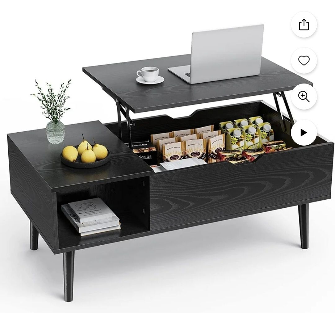 Wooden Lift Top Coffee Table with Hidden Compartments and Adjustable Shelves - Ideal for Small Homes, Apartments, Reception Rooms, Black Grain