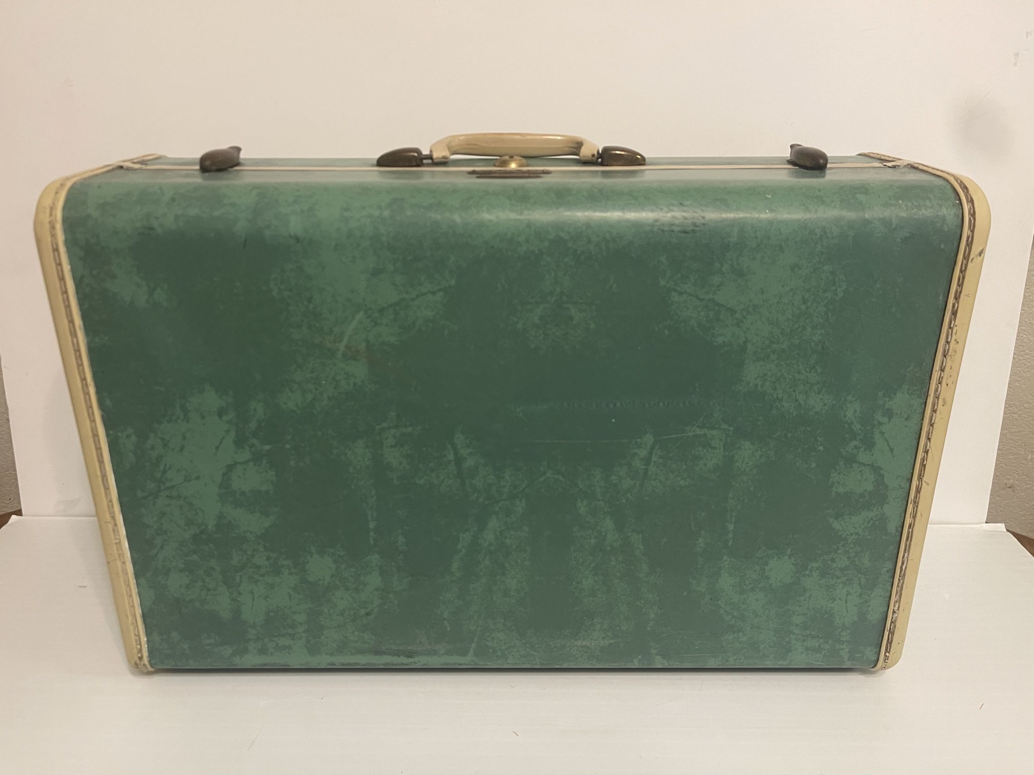 Vintage Samsonite Train Luggage Green Turquoise 21”x 13”x 7”