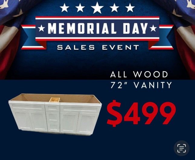 All Wood 72'' Vanity $499 Memorial Day Sales Event!