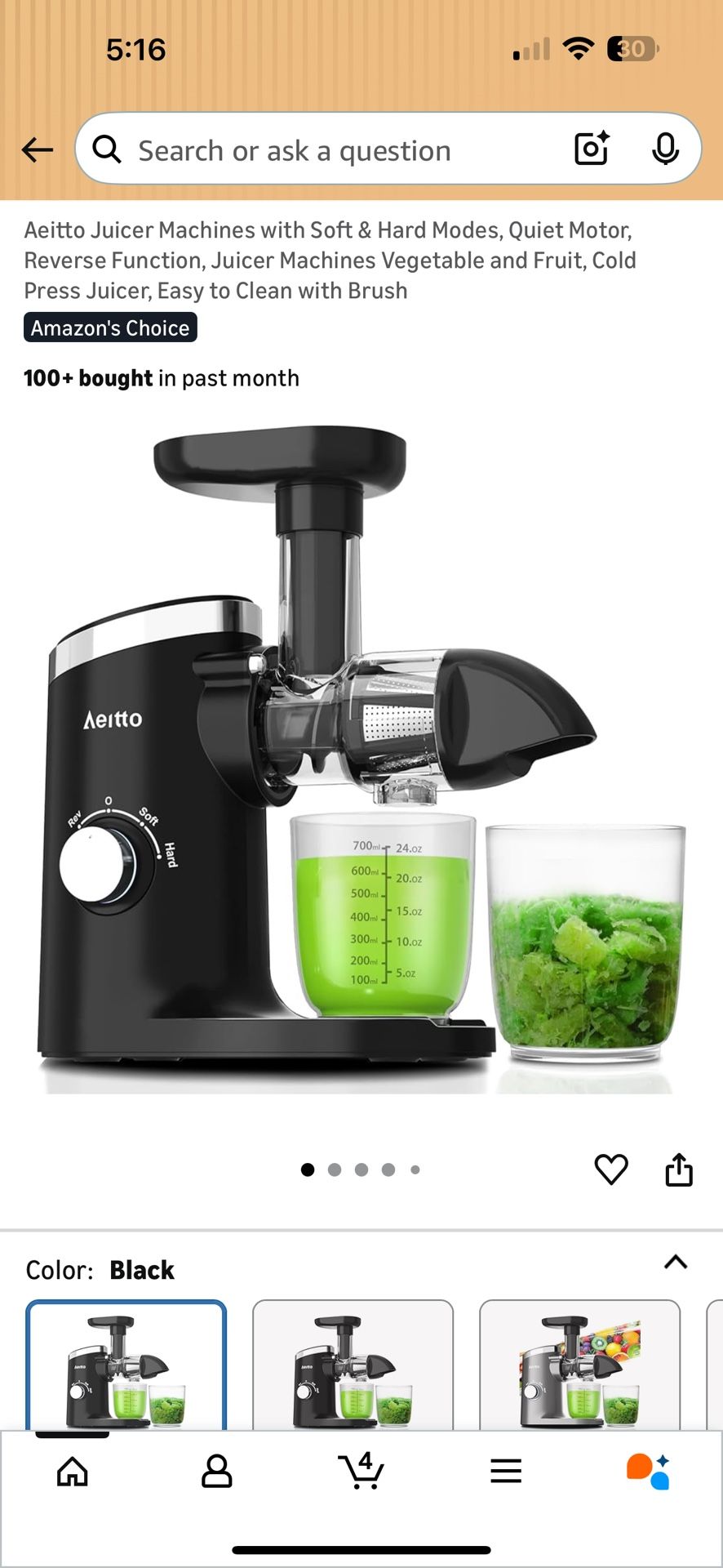 Aeitto Juicer Machines with Soft & Hard Modes, Quiet Motor, Reverse Function, Juicer Machines Vegetable and Fruit, Cold Press Juicer, In the box-may have been used-new/like new condition. This item was taken out of the box and tested. It comes on and performs as it should- no food was used in this test. The item is back in the box and ready for pick up in blue springs. The price is firm FCFS Thank you!