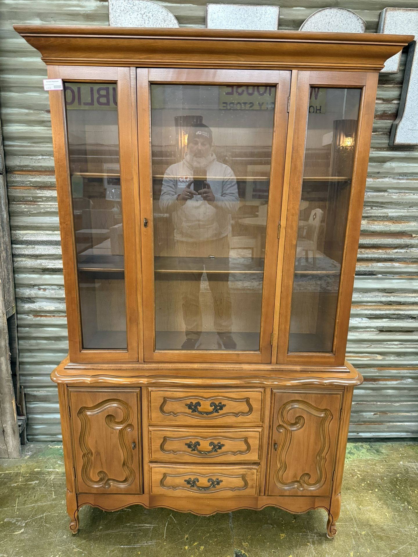 Wood china hutch. 1 door on top with 2 shelves. 3 drawers. 2 side storage areas. Item can be inspected at 205 Forsythe Street Monday thru Friday 10am to 5pm. The Re-Store Warehouse accepts donations of new and used furniture, appliances, kitchen cabinets, bathroom vanities, toilets, outdoor furniture, windows, doors and more that it sells at their open to the public warehouse. 100% of the net proceeds are donated to Fayetteville area charities. Schedule your free pick up today by visiting www.therestorewarehouse.com/donate or by calling (910) 321-0780. Prices do not include 7% sales tax or 3% credit card fee (if applicable). The Re-Store Warehouse offers a 10% military discount and a 10% discount to First Responders every Friday.