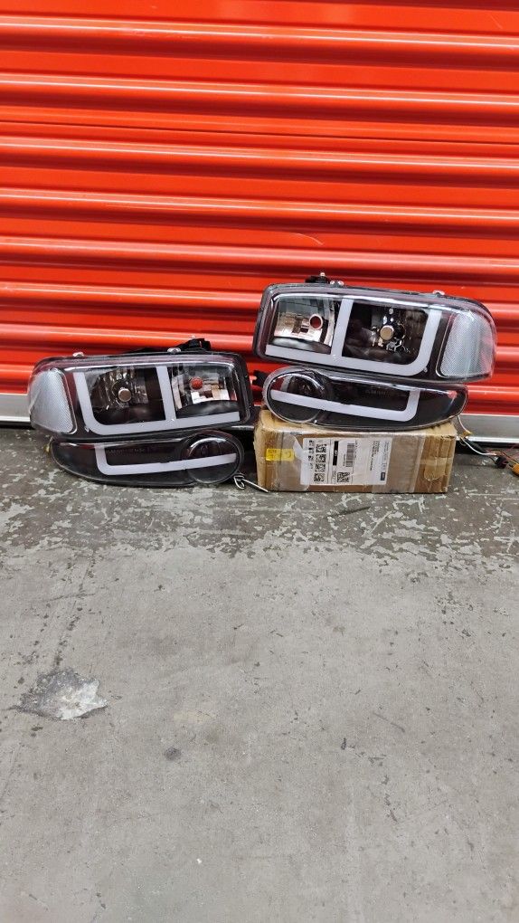 For 2001-2006 GMC Sierra Yukon Denali Switchback LED DRL Pair Headlights Black