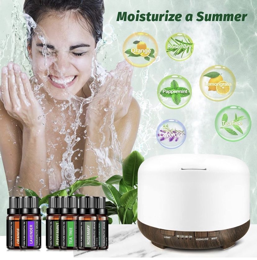New YIKUBEE 500ml Essential Oil Diffuser with Oils Set, 6x10mL Essential Oils for Diffusers for Home, Aromatherapy Humidifier, Diffusers for Essential Oils Large Room