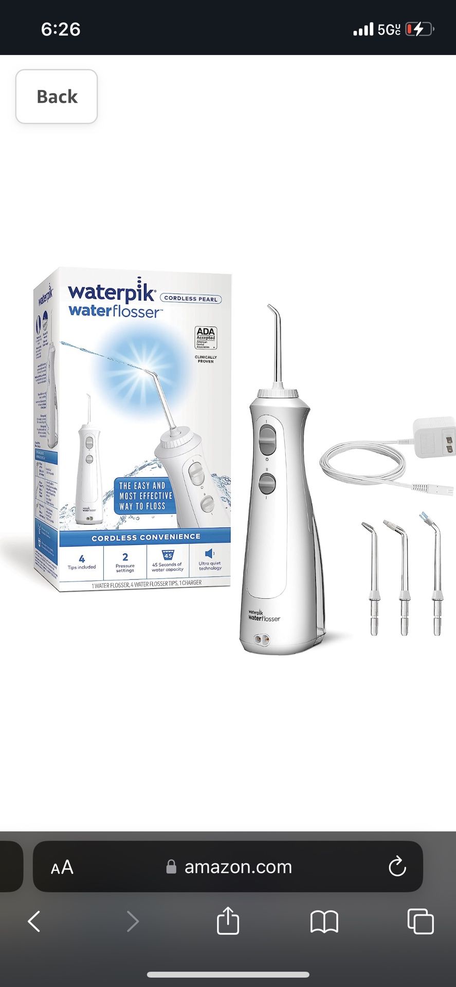 New Waterpik Cordless Pearl Rechargeable Portable Water Flosser for Teeth, Gums, Braces Care and Travel with 4 Flossing Tips