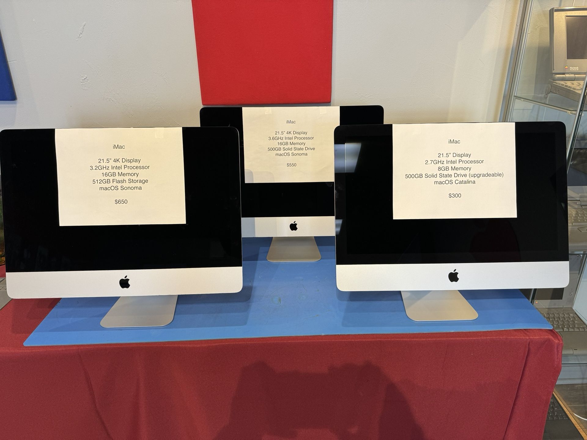 Multiple machines available, inventory updated 2/5/24, and can change quickly, Please read entire listing for details! All machines listed below can have the NVMe\SSD Flash Storage Upgraded up to 2TB for an additional charge. 2019 iMac 21.5 4K i7 3.2 GHz 6-Core 512Gb Flash Storage 16 Gb RAM - $650 - Sonoma 2019 iMac 21.5 4K i3 3.6 GHz 512Gb SSD Storage 16 Gb RAM - $650 - Sonoma 2013 iMac 21.5 i5 2.7 GHz 500 Gb SSD 8 Gb RAM - $300 - Catalina 2018 MacBook Air 1.6Ghz, 256GB Flash, 8GB RAM - $(contact info removed) 15” MacBook Pro 2.2 GHz i7, 16GB RAM 256Gb Flash Storage - upgradeable $500 - Monterey 2015 13" MacBook Pro 2.7Ghz,, 8GB RAM, 128GB SSD - $(contact info removed) & 2015 MacBook Air 13" i5 1.6ghz, 8gb of RAM 128, 256gb Flash Storage - $300 - Monterey MANY AVAILABLE 2013 MacBook Air 13" i5 1.3ghz, 4gb of RAM 256gb Flash Storage - $200 - Big Sur 2013-2015 MacBook Air 11". $200 -$(contact info removed) MacBook Pro 15" - $200 All machines come with original Apple Charger, Batteries in Normal condition and above 80%. If they don’t pass testing, brand new batteries are already installed All are guaranteed 100% functional, running the latest MacOS supported by the machine and include a 90 day warranty. Trade ins welcomed for a credit towards a replacement, or will pay cash on the spot after evaluating if you just want to sell your MacBook.