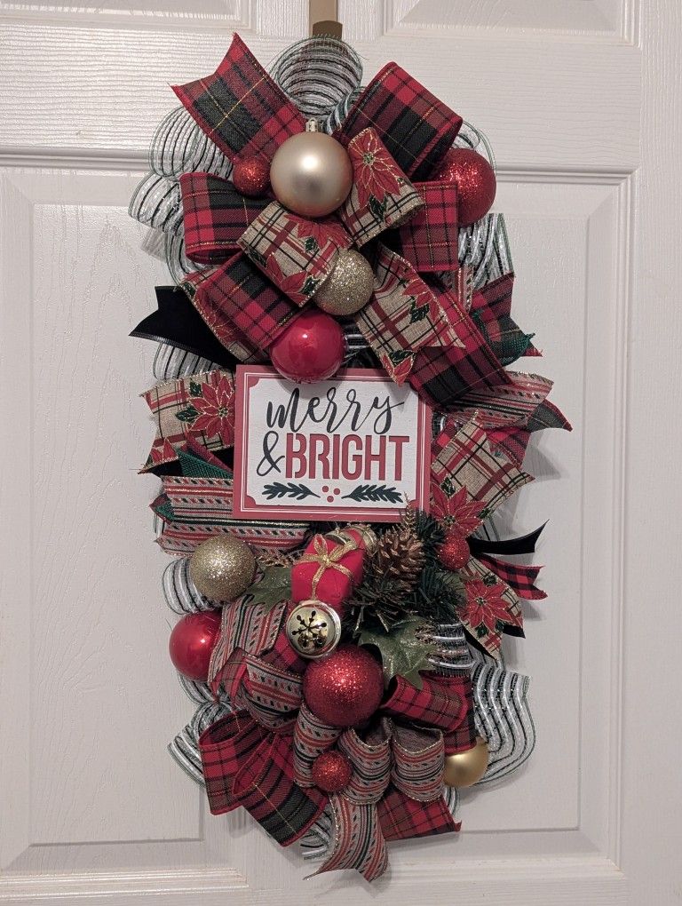 Merry and Bright Christmas door swag/ wreath. Pick up in Hendersonville.