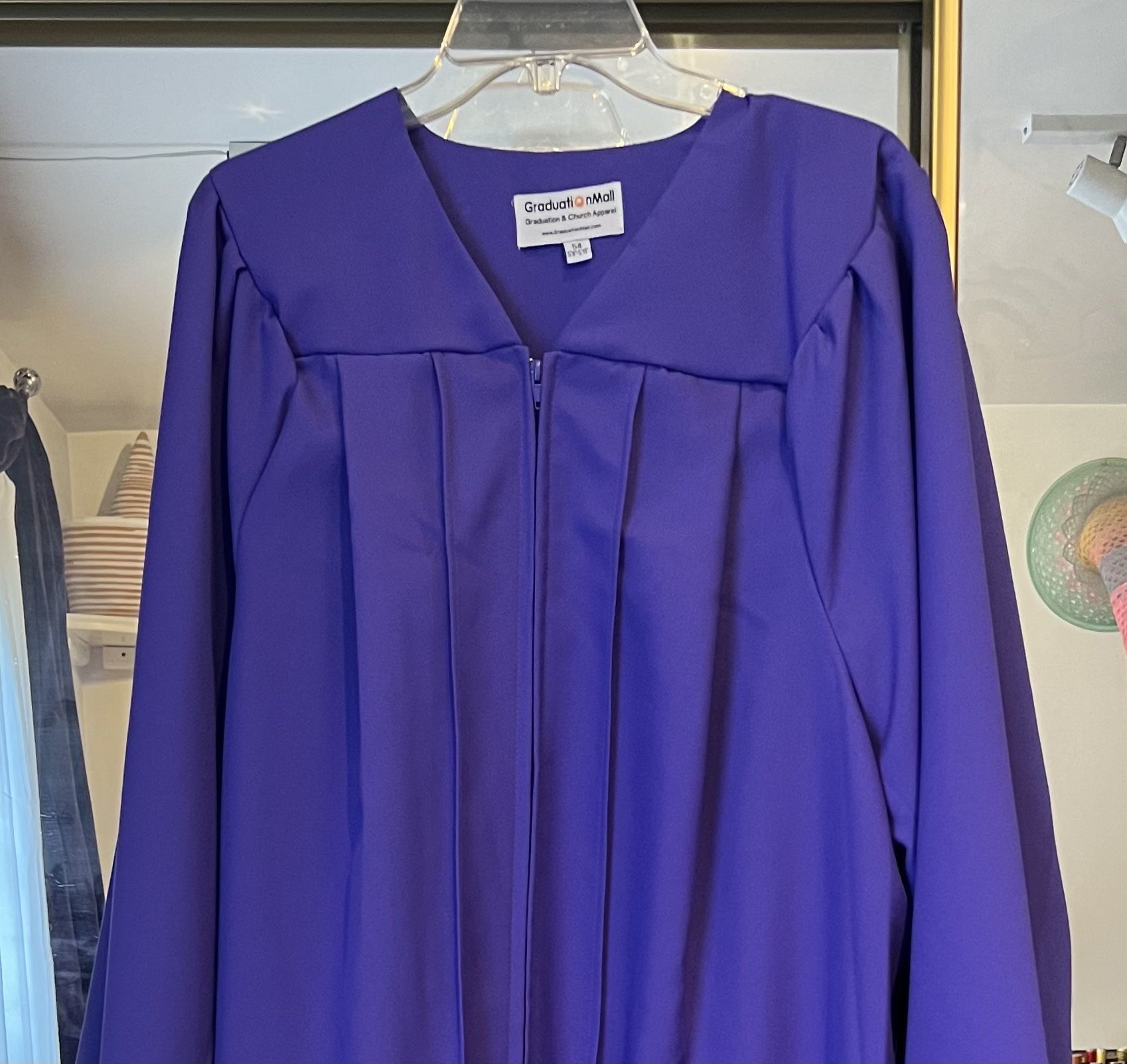 This is a graduation or choir robe in matte purple. I wore this robe for one ice skating performance and have not used it since, so it’s pretty new and in great condition. No hat or tassel.