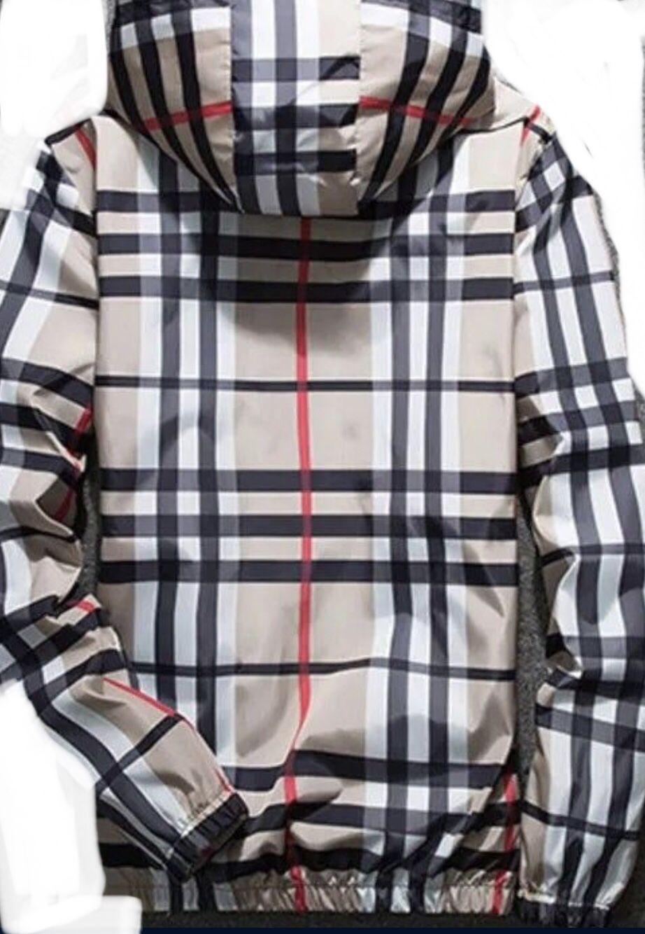 Men’s hoodie jacket beige black and red stripes sizeM L/xl