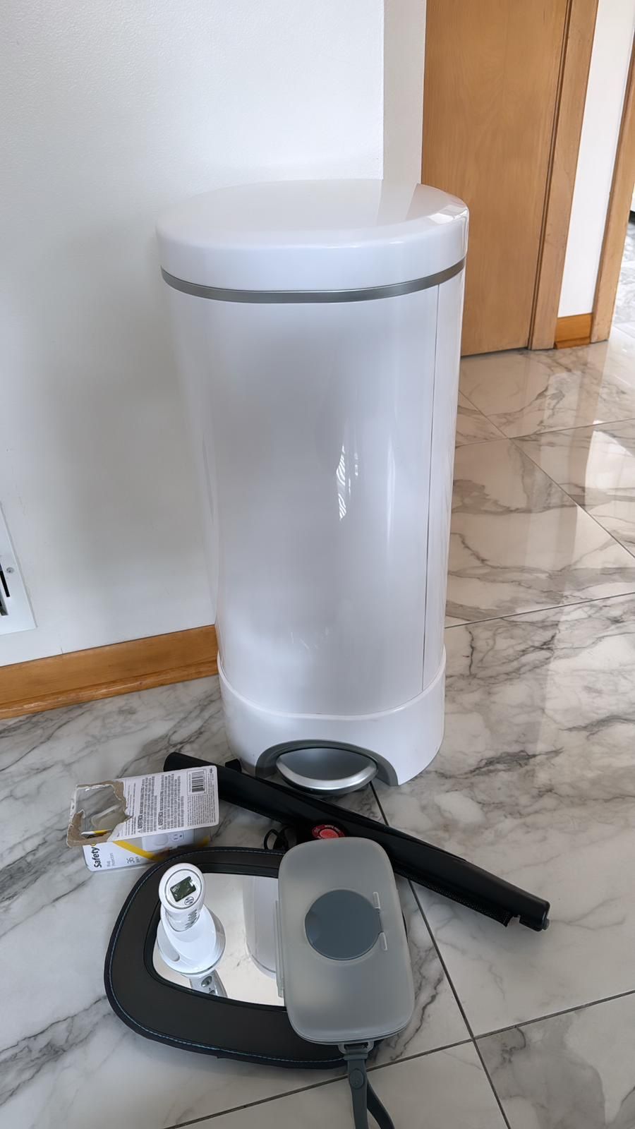 Diaper pail, thermometer, mirror, safety outlet plugs and sun shade.