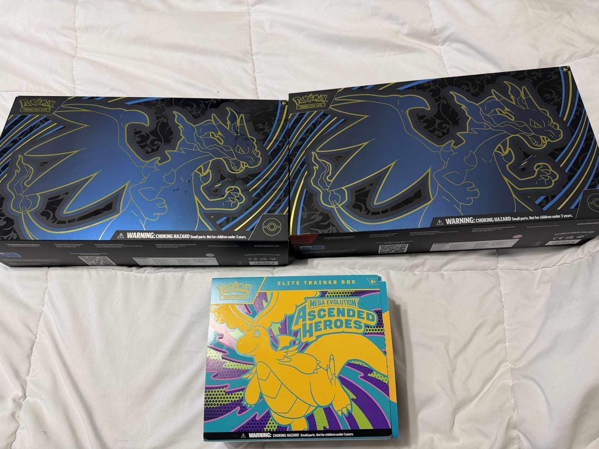 Pokémon Open Pack Lot - Phantasmal Flames UPC - Ascended Heroes ETB - Used Open Open Packs - Some Cards Missing In Packs - Used Open box lot. No promo cards. 104 opened packs - some cards missing - 1 Playmat - Mega Charizard X - 12 (Phantasmal Flames) - 20 (Ascended Heroes) - 12 (Mega Evolution) - 8 (Destined Rivals) - 9 (Prismatic Evolution) - 10 (Journey Together) - 16 (Twilight Masquerade) $200 Cash , Pick up in Cypress