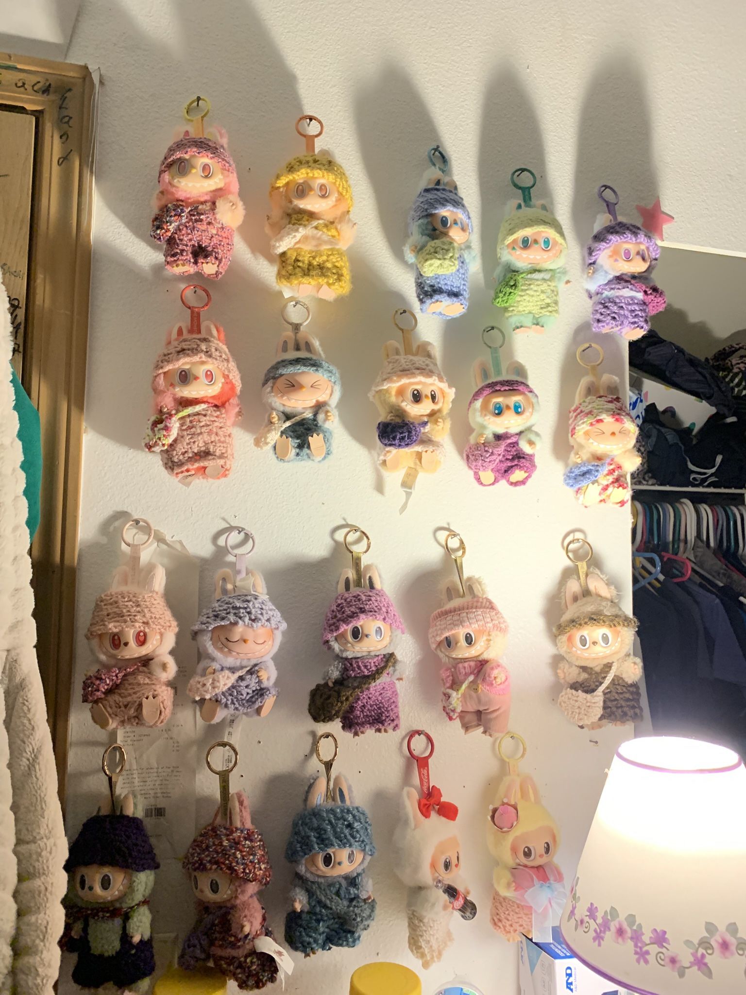 I have every Labubu from the have a seat, big into energy, and exciting macaroon line (except the secrets). I also have the surprise shake Coca-Cola Labubu and let’s checkmate queen Labubu. I’ll sell all for $630 or you can buy them individually from my page where I have each one listed. All are in great condition and come with custom made crochet clothes, their box and card (except soy milk).