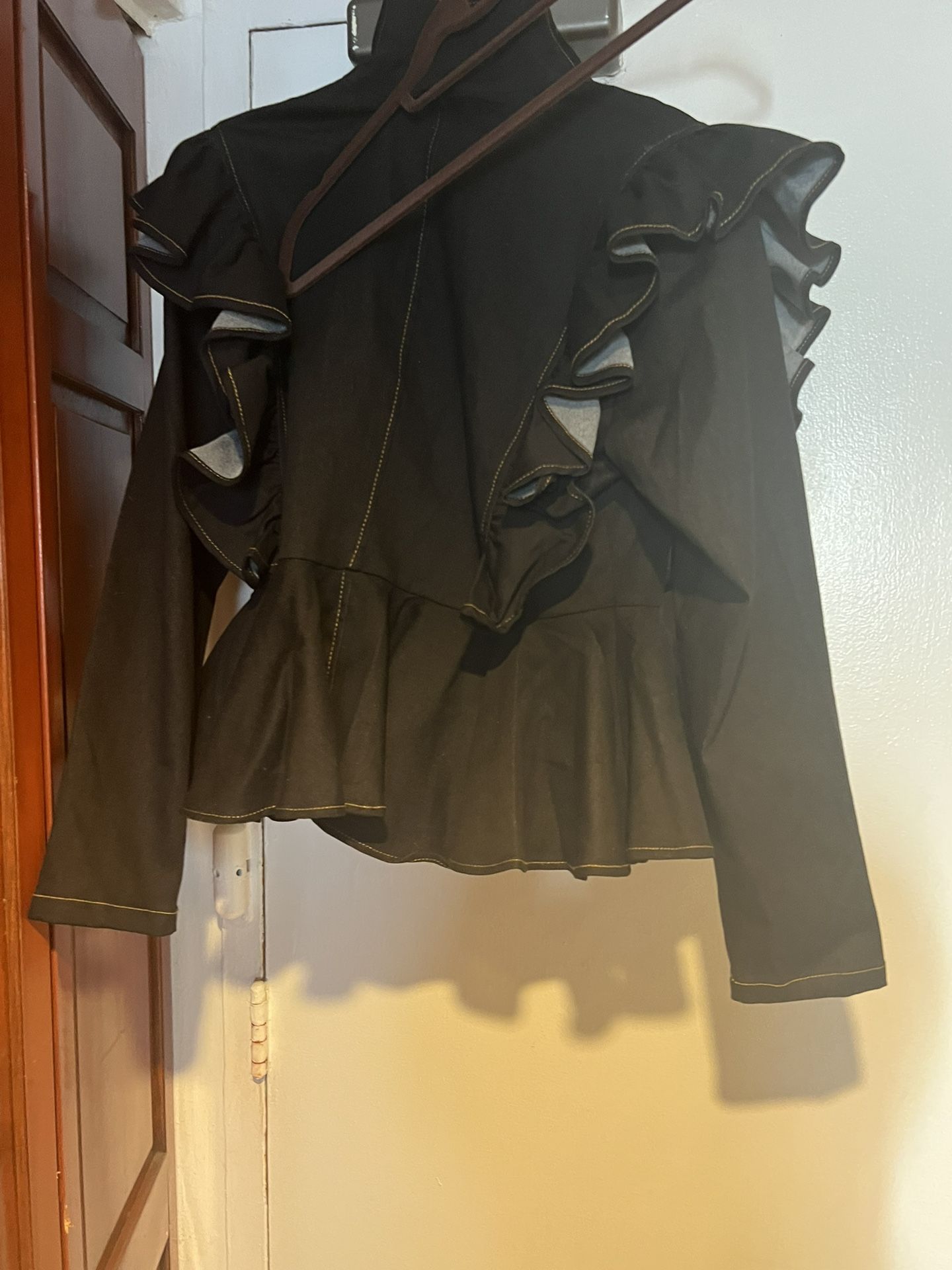 Dorinda Clark Cole Coat ruffle dress suit jacket sports bomber blazer