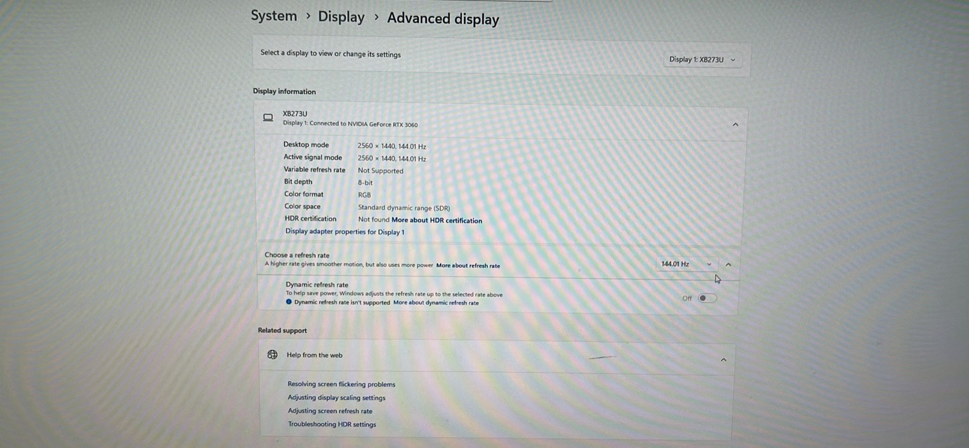 Model Number XB273U Has a slight scratch on the screen but not even noticeable when playing. Does not come with power cable