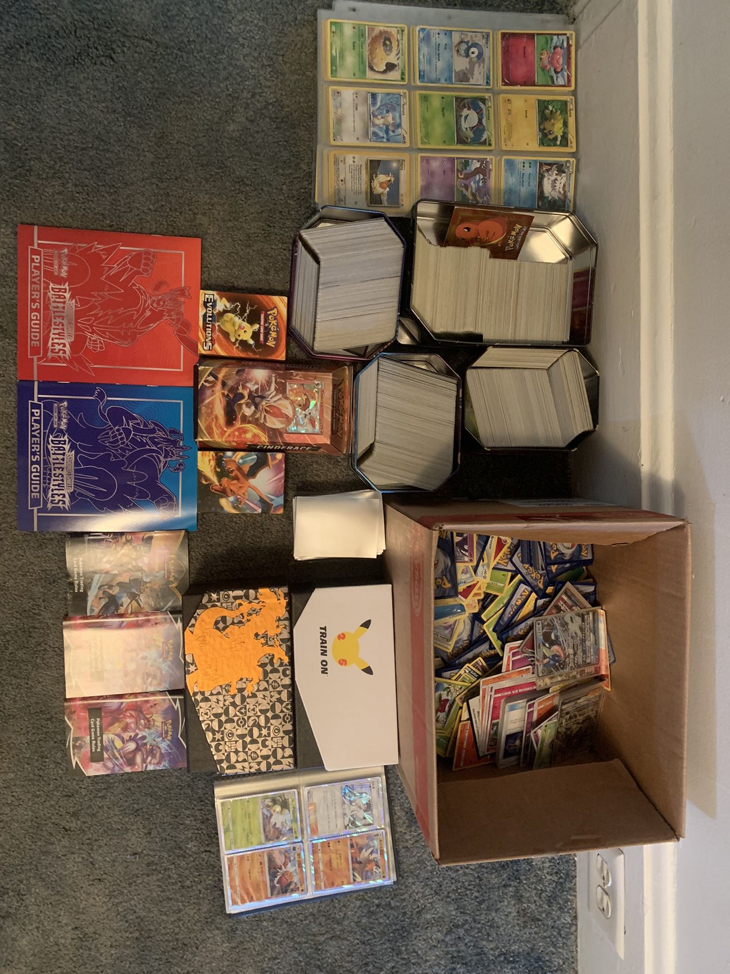 Pokémon cards, I have cards from 1999 to 2020 cards. I have 750 to (contact info removed) wotc cards all in great condition. I have a about 100 from 2015-2016 cards. I also have about 1000+ newer cards from common to uncommon some holos and reverse holos. All in pretty good condition. The real value is in my older cards. There is about 1000$ plus in just my wotc cards. Only gaining value every year. Just looking to sell because I’m moving and don’t wanna cart them around. 800$ obo for all which is a crazy deal. For more pictures just shoot me a message.