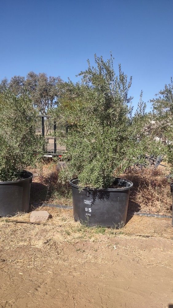 Fruitless olive trees in 95 gallon containers are $325.00 each we have 10 of them. We also have two single trunk desert museum trees and 95 gallon containers. 275.00 each. And we have cactus for sale Mexican fence post cactus are $15 per linear foot. We also have other varieties like Santa Rita prickly pear, paper spine and Golden torch.