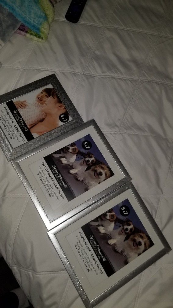 3 picture frames. All same size The frames are gray Never used and still wrapped All 3 for $ 13