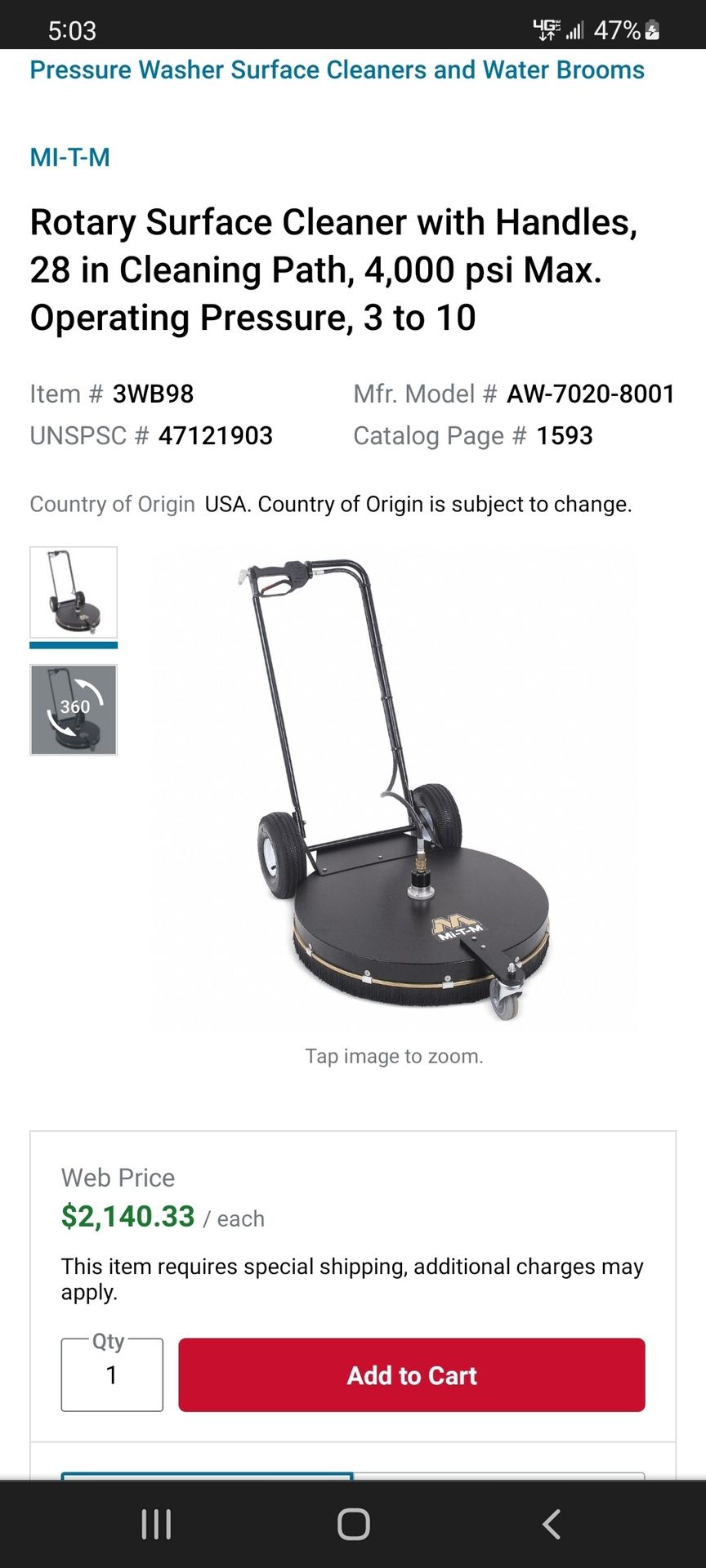 Commercial grade surface pressure washer good to go and ready to use. Paid 850 for it asking 600 obo. This thing does it job. Can deliver or meet. Only reason selling is because I got a new one.