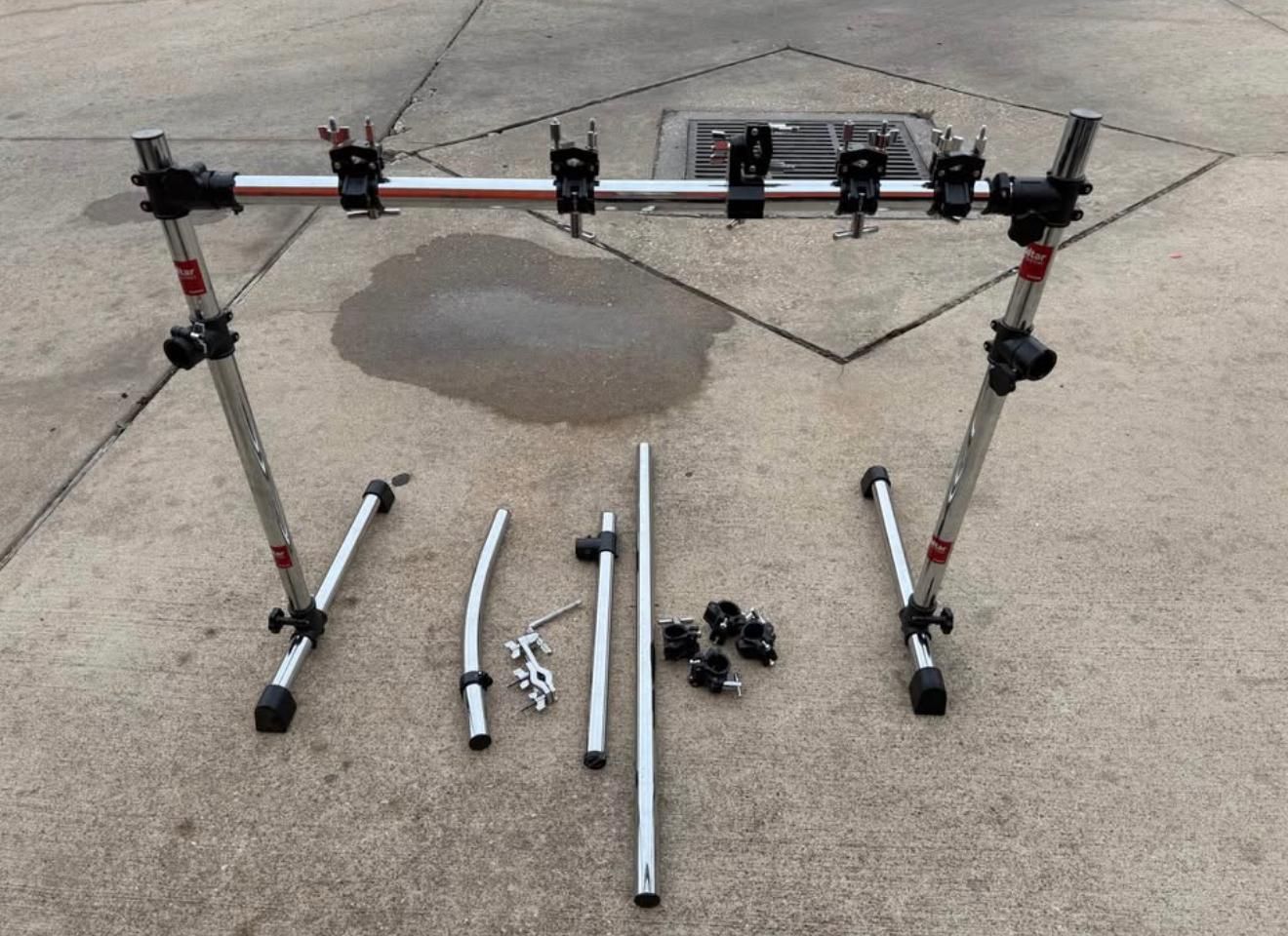 Professional Gibraltar drum rack system in very good used condition. Solid, stable and fully adjustable — perfect for studio, live gigs, or home setup. Includes: • Gibraltar rack frame (2 vertical stands + cross bar) • Multiple original Gibraltar clamps (logo visible) • Extra chrome tubes / extensions • Additional heavy-duty clamps (compatible with Gibraltar) • All hardware shown in photos Everything tightens properly, no cracks or damage. Normal cosmetic wear only. Video of the rack fully assembled included. Pickup in Katy 77494 Cash No shipping First come – first served.