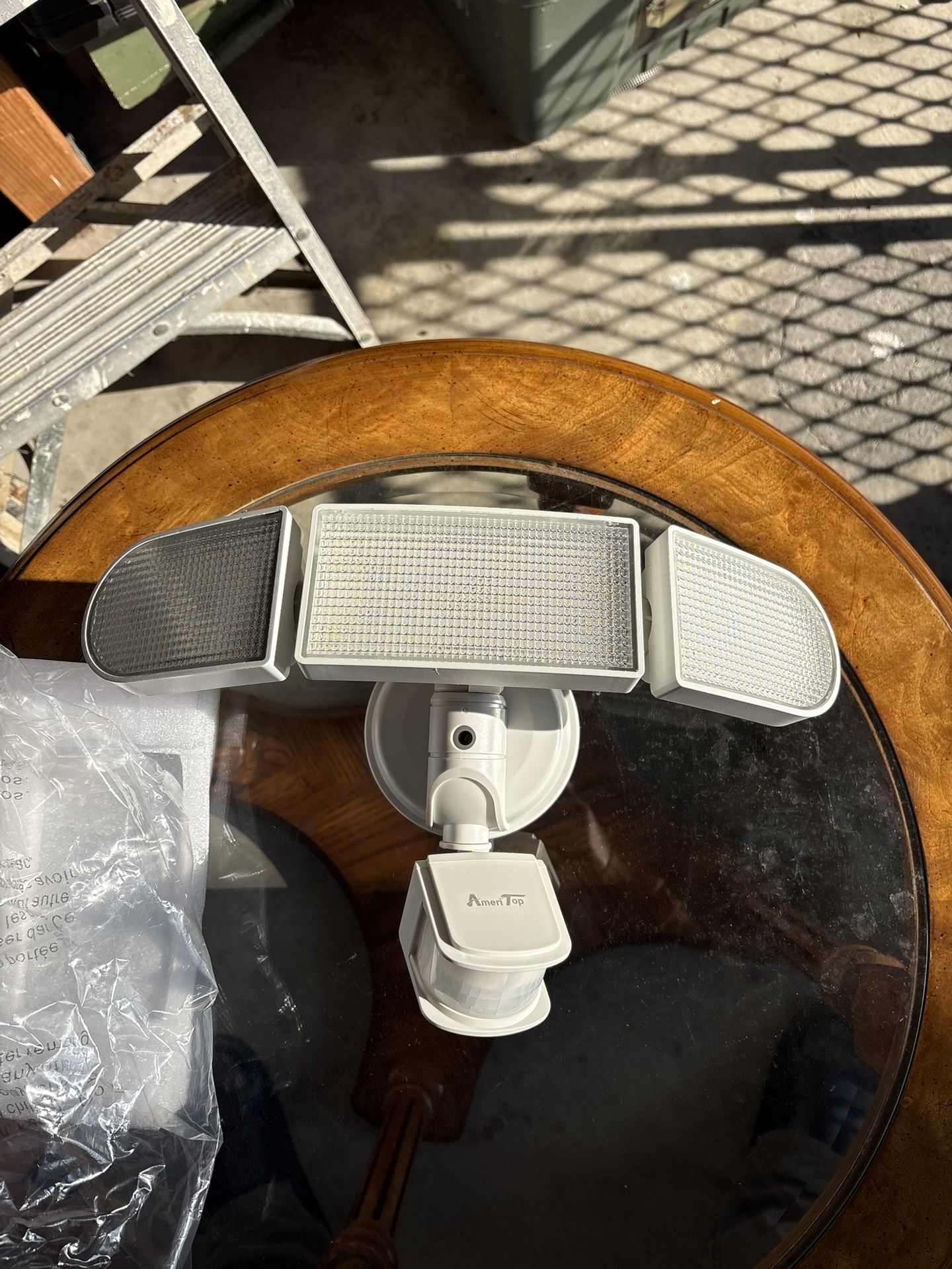 Brand new and never been used LED security light. Has remote control. Night sensor.