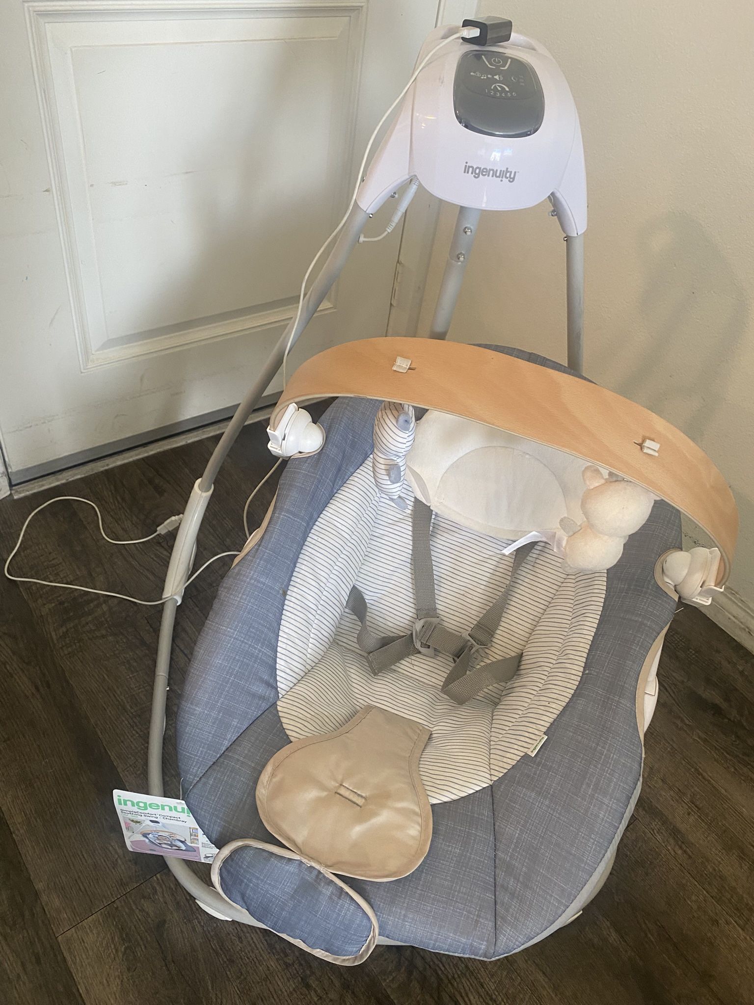 Gently used baby swing! USB Adapter. Plays soothing sounds for baby. Can break down into 3 parts. Check pictures lmk if you have any questions.