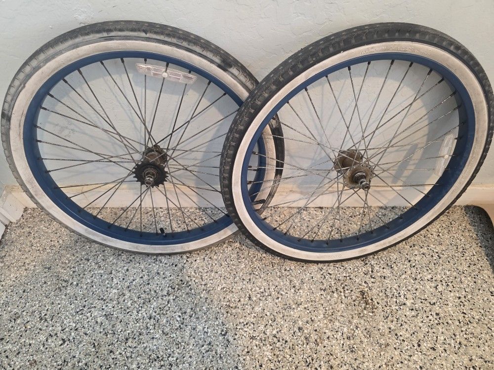 🔥🚲🔥24 Wheelset ,bmx Or Beach Cruiser Bike,white Walls Tires And Tubes🔥🚲🔥