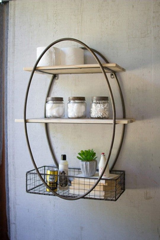 Tall Oval Metal Framed Wall Unit With Recycled Wood Shelves New in box This stylish piece can take care of so many needs. Place in a bathroom and use to store toiletries and bathroom essentials or use as a bar space to store your favorite mixers! 10" x 22" x 30"t