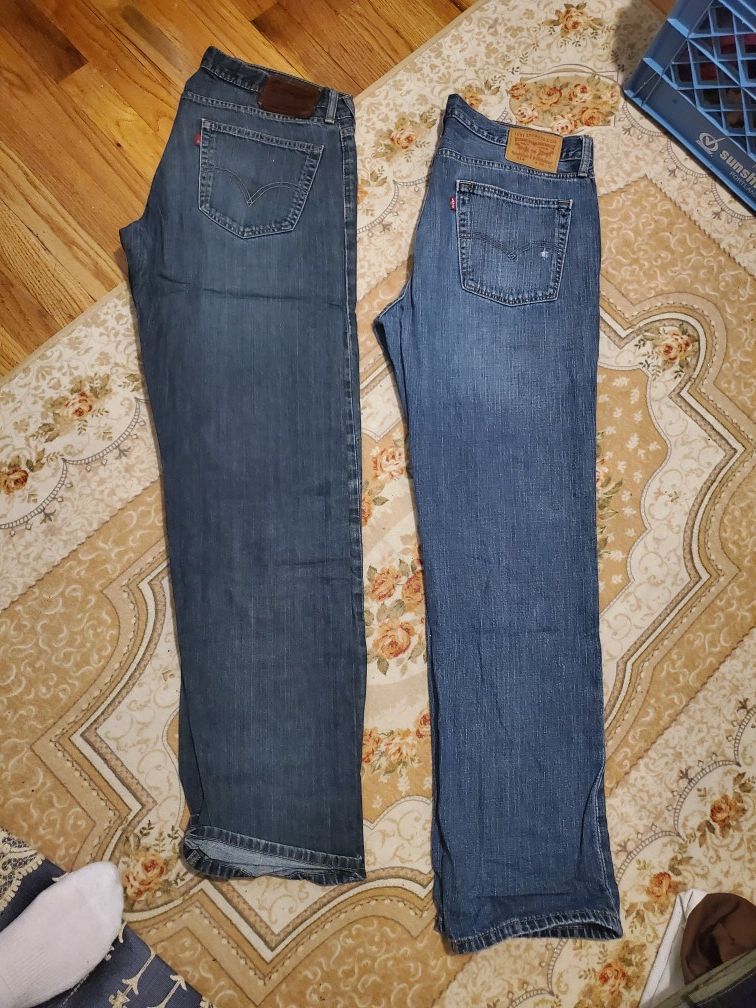 Levis, jeans, shorts sizes 36 and 38, maybe a 40