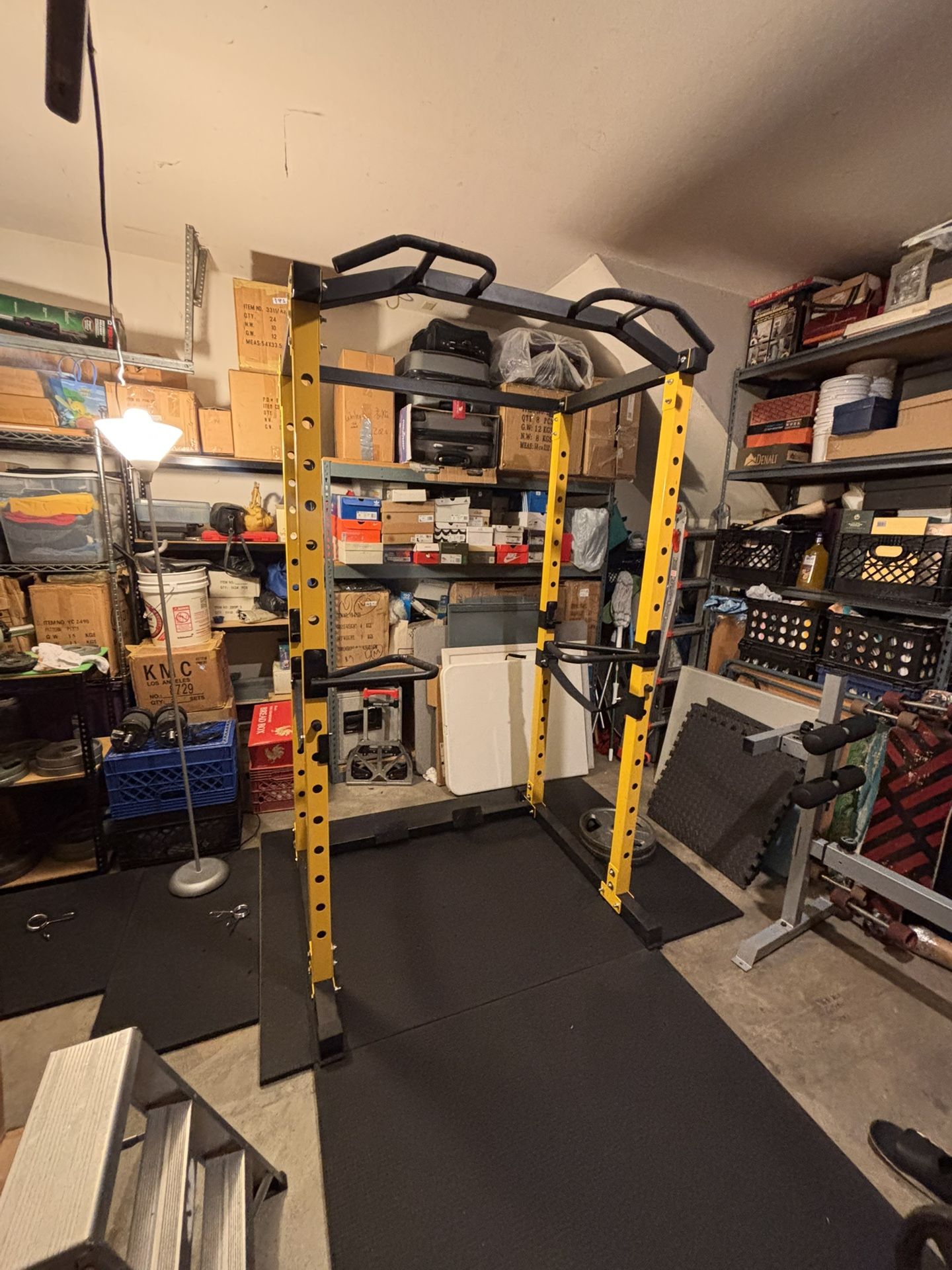 Squat rack in good condition, used indoors only. Comes with safety straps and dip attachment. Price is firm. Meetup in public area. Ignore: power rack power cage barbell pull up dip station bench home gym weights weightlifting powerlifting calisthenics