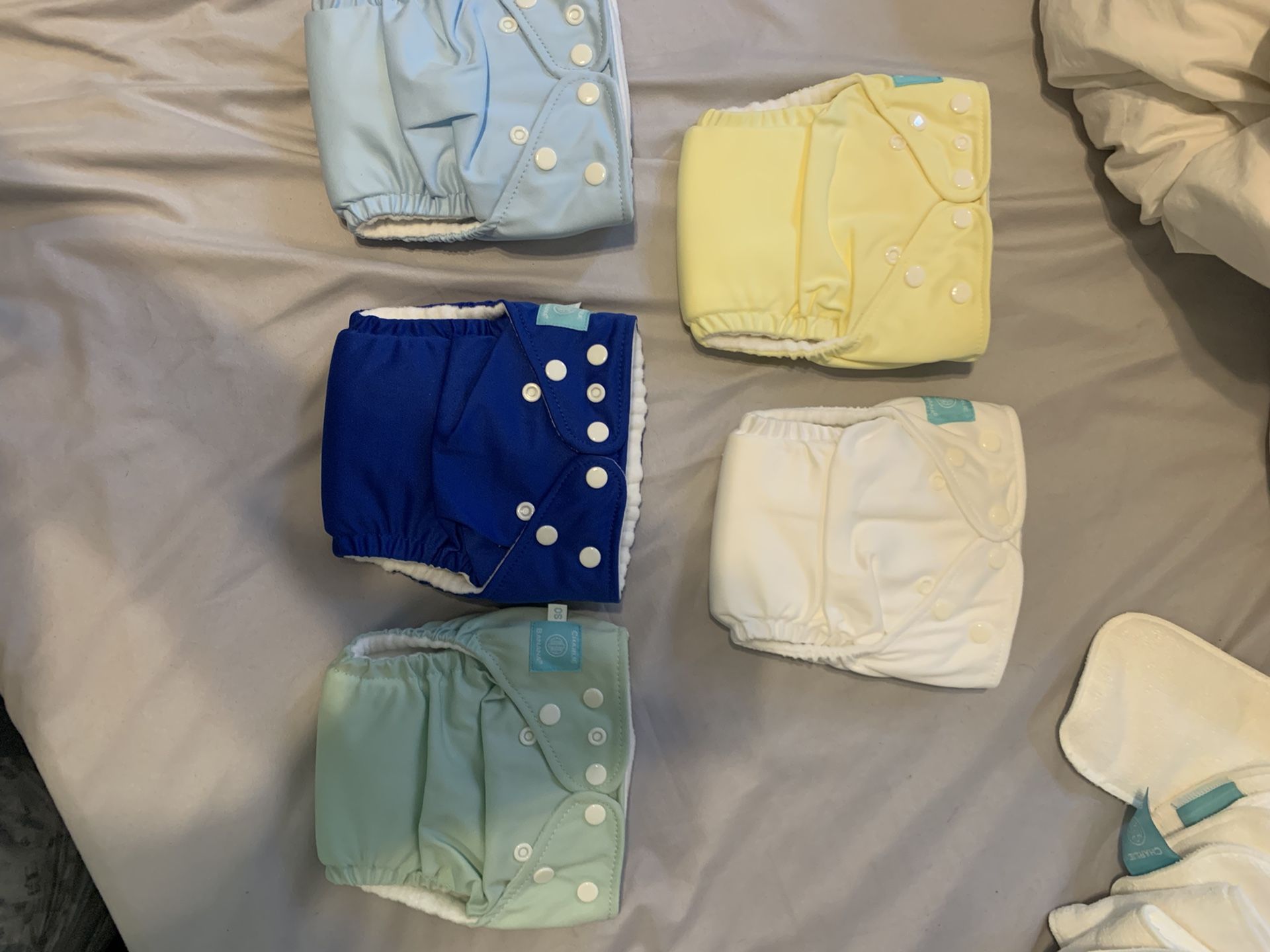 5 OS cloth diapers and 5 OS small cloth liners from a Charlie Banana set we received as a gift but never used!