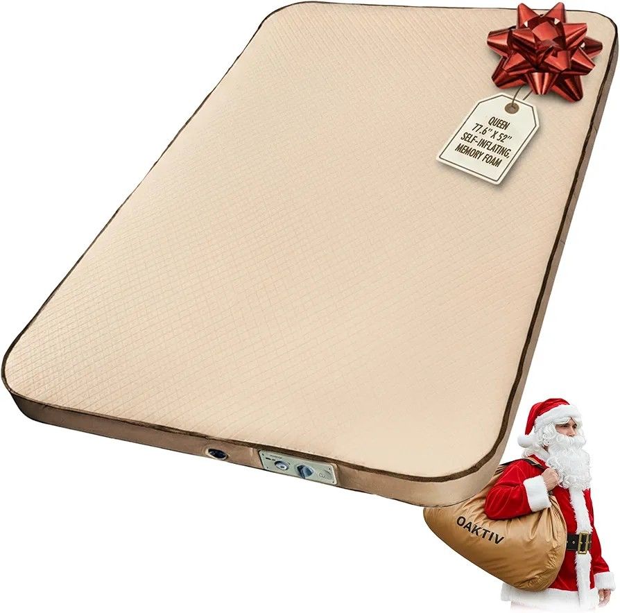 CONDITION: OPEN BOX/LIKE NEW Description: WanderMate - Self-Inflating Camping Sleeping Pad - Queen-Sized Inflatable Camping Mattress for Car, Backpacking, and Tent - Durable 4-Inch Memory Foam and Air Support - Cordless 2,500mAh Pump Dimensions: 77.6"L x 52"W x 6"Th