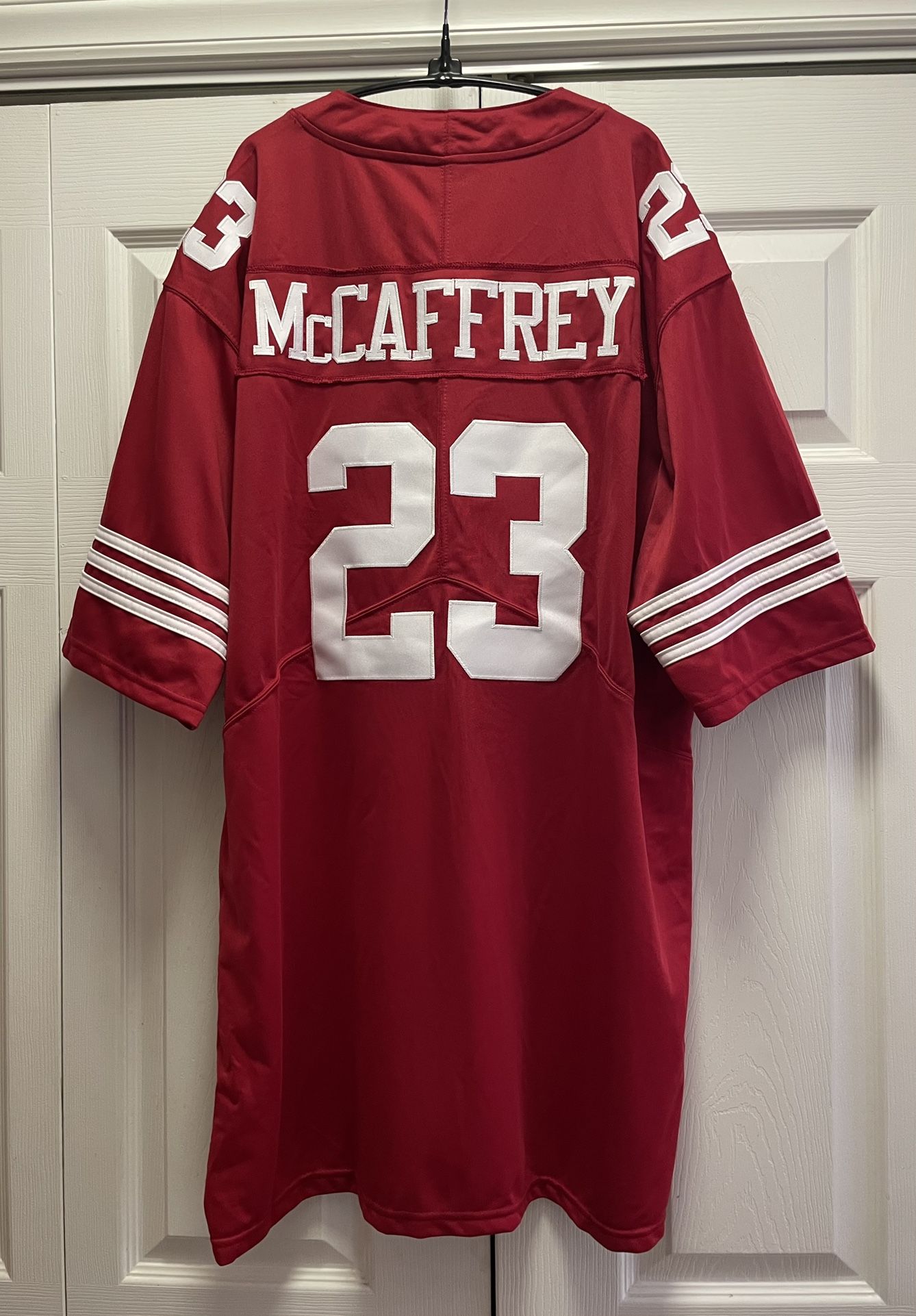 Red #23 McCaffrey football fan jersey. Great for game day, casual wear, or collectors. • Size XXXL • 100% Polyester • Manufacturer unknown • Made in China • Not NFL or team branded Measurements (approximate): • 26" armpit to armpit • 35" length Good Condition