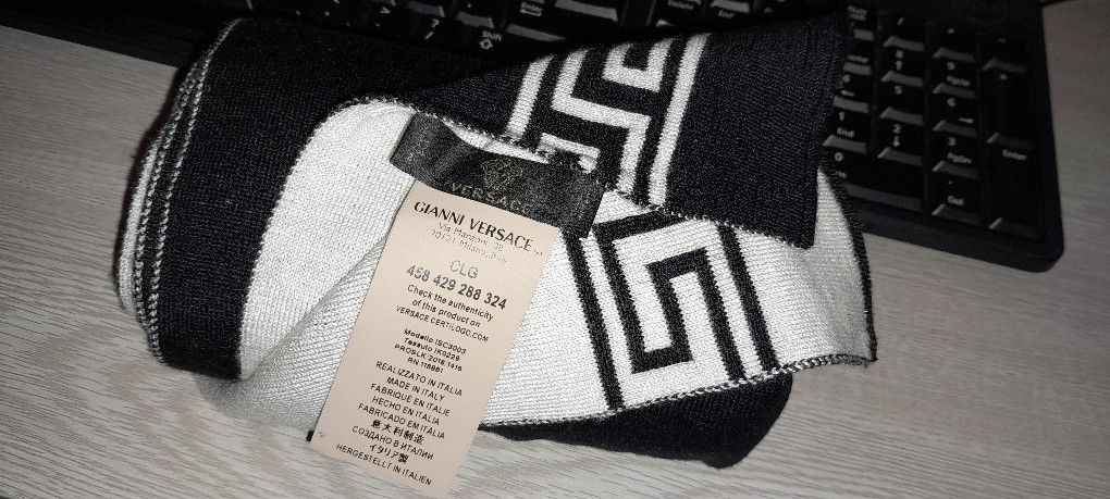 There's a tag for authenticity you can put the reference online on versace's website. This is an original versace medusa scarf reversible black/white (original price 700$) it is new